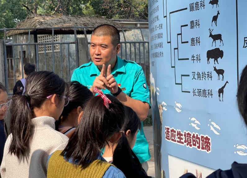 5日,北京动物园推出国庆节假日科普研学活动。推出“爱上房的毛孩子——垂直迁徙的秦岭羚牛”为主题的研学课堂。孩子们通过学习标本、图解以及活体动物深入了解动物科普知识,为游客增添生动精彩的节日科普游园体验。